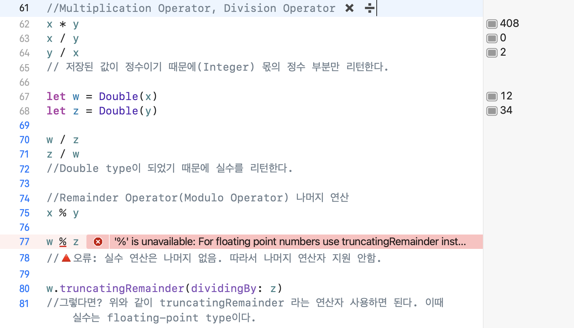 아. truncatingRemainder 실수의 나머지 연산 (only floating-point type)