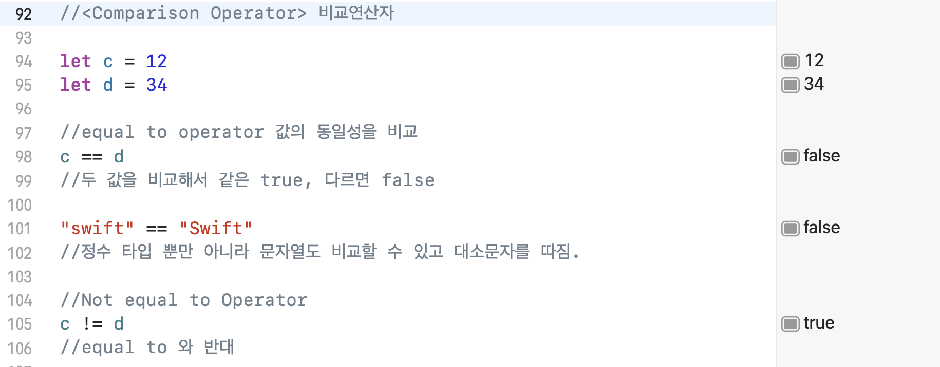[Swift] Comparison Operatorswift 2024. 3. 3. 23:00