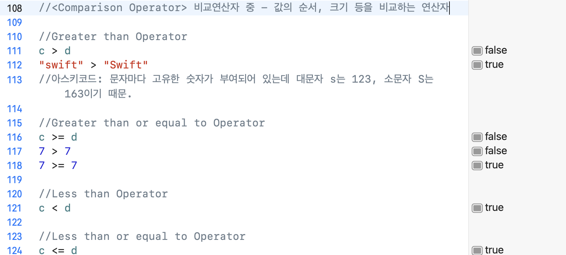 [Swift] Comparison Operatorswift 2024. 3. 3. 23:00
